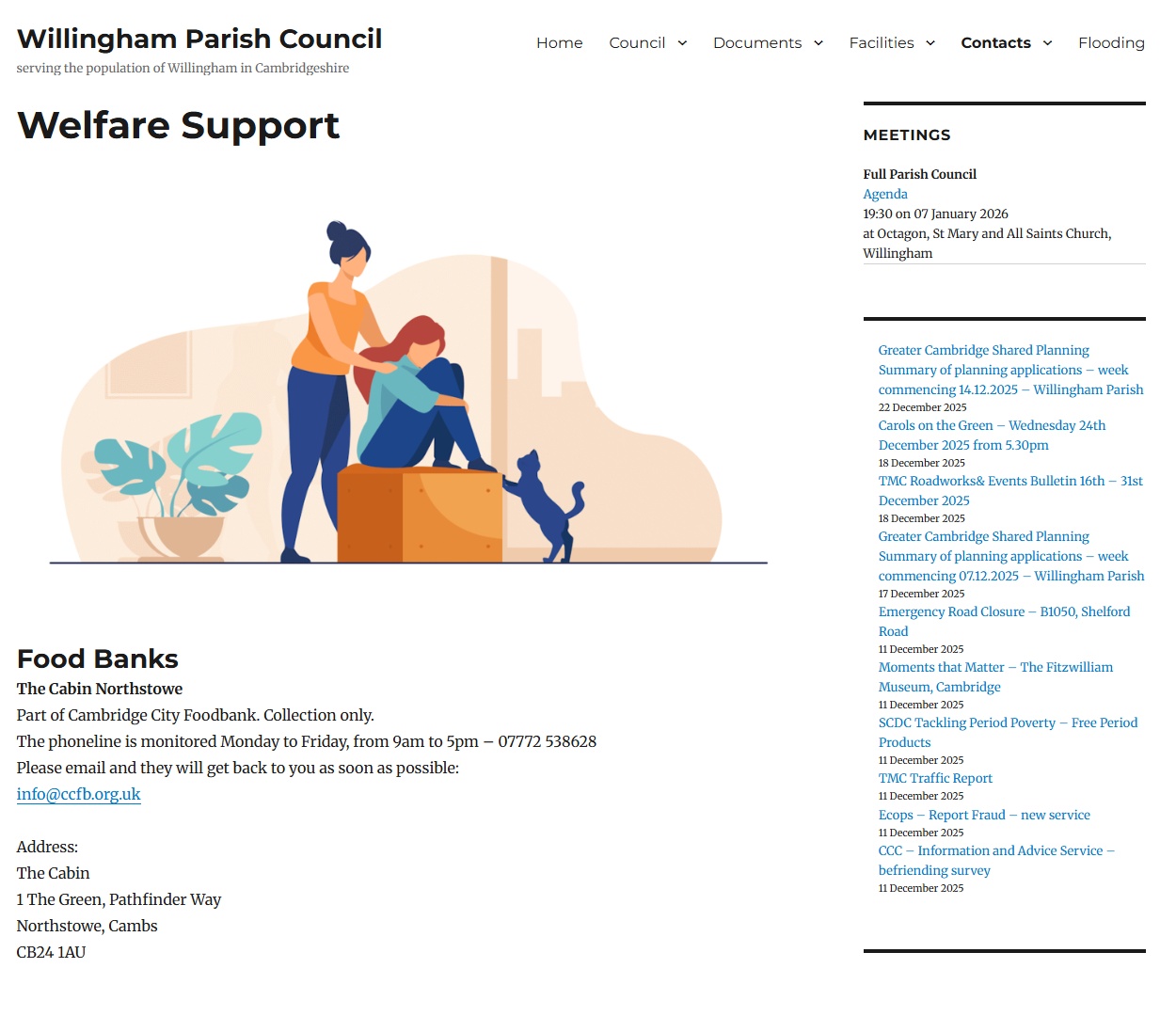 Here you will find details of Councillors & Council meetings; documentation including agendas, minutes & policies; office opening times & contact details; Council newsletters; and news items from the County Council or District Council which affect the village.